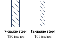 Our medium duty safe model and is recommended for stand-alone safes. It is constructed of 7-gauge steel. It comes standard with a quarter-inch steel door.