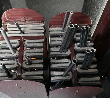 We offer two types of pull-out and adjustable racks. Standard racks come with a fixed, welded U-shaped mount, with the spacing between each mount determined by your collection/specifications.