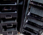 We will work with you to choose just the right interior fittings to fit your needs and meet your desires. We offer a variety of storage or presentation choices for your safe’s interior, including drawers, jewelry trays, watch winders, document storage solutions, purse hooks, open shelving, or any other kind of storage you require.