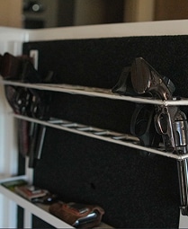 Our pistol racks are all custom made for your unique collection. They are made-to-measure and can accommodate anything from a single pistol to many more. They mount to a door or wall of a safe.