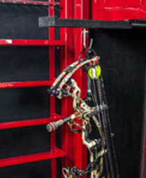 For bow storage, we offer fixed hooks, pullout drawers, or slides with hanging hooks.