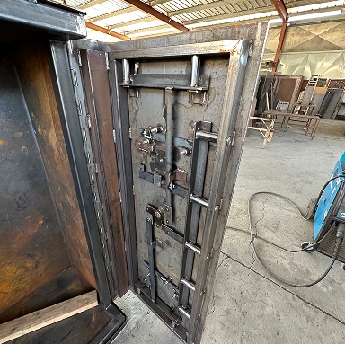 Visalia Safes designs and fabricates custom vault doors for people who require more than basic, off-the-shelf security. Whether you’re creating a secure room, a walk-in vault or a hidden safe room, our vault doors are built to meet your architectural and security needs. Each door is engineered for strength, fire resistance and tamper prevention. And each vault door is made to fit your space, whether that means discreetly hidden or loud and proud, our vault doors fit your life, your way. Every element is tailored: from biometric entry and sound insulation to reinforced frames and concealed hinges, our vault doors are only made for a single customer.